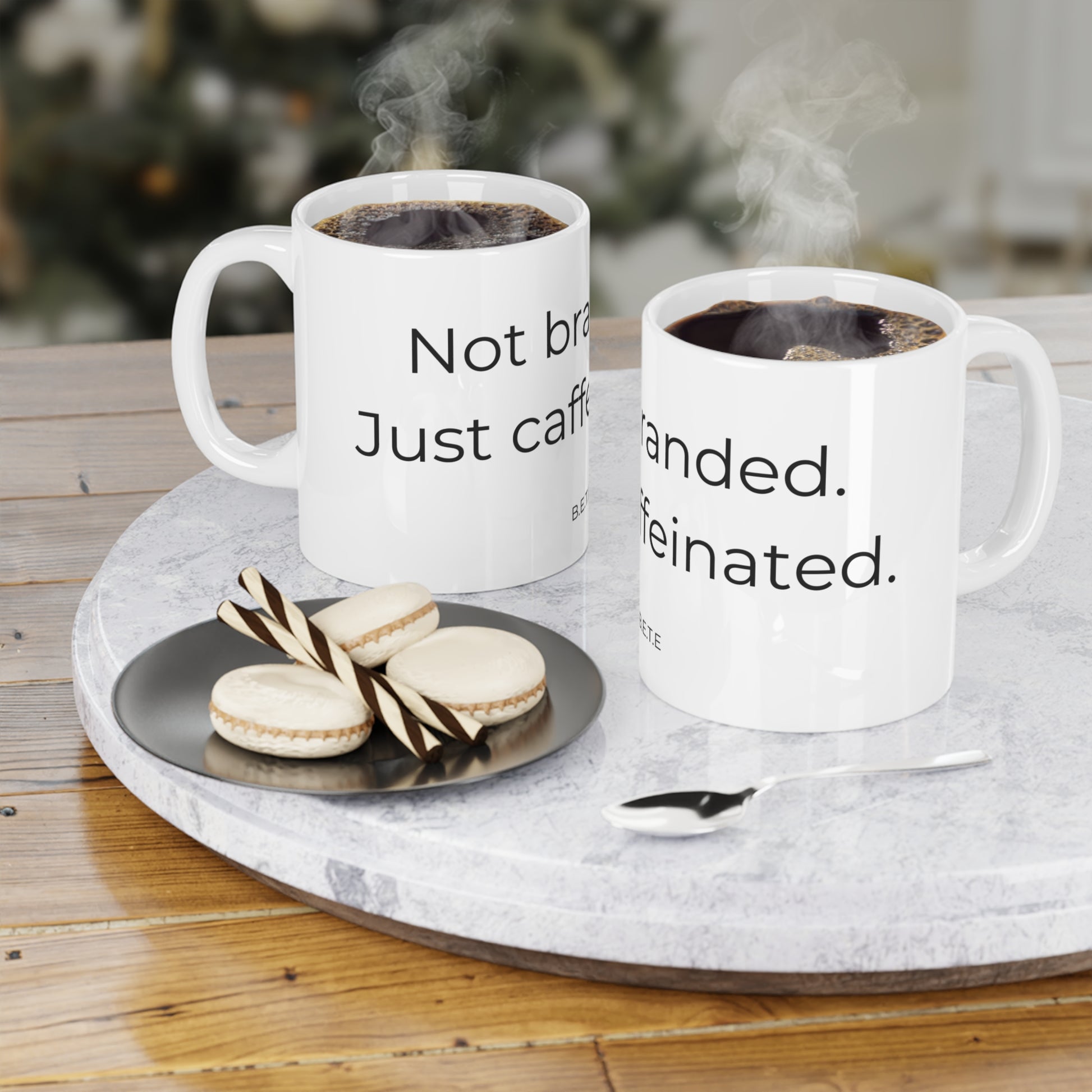 Not branded. Just caffeinated. Ceramic Mugs.